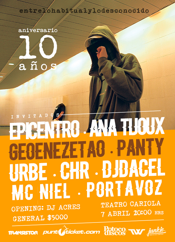 Para celebrar esto, el músico realizará un concierto en el Teatro Cariola el próximo viernes 7 de abril, en donde contará con la participación de artistas como Ana Tijoux, Panty, Geonezetao, DJ Tee, Urbe, DJ Dacel y más.