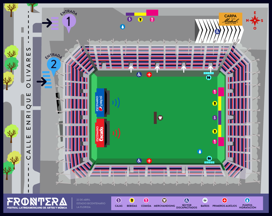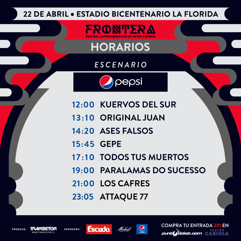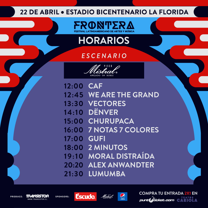 Este sábado 22 de abril se realizará por cuarto año consecutivo, el Festival Latinoamericano de Música y Artes, Frontera 2017. El festival, que inicialmente estaba proyectado para el 3 de diciembre pasado en el Club Hípico de Santiago, se traslada ahora al Estadio Bicentenario de La Florida, con un line up reforzado y diverso.