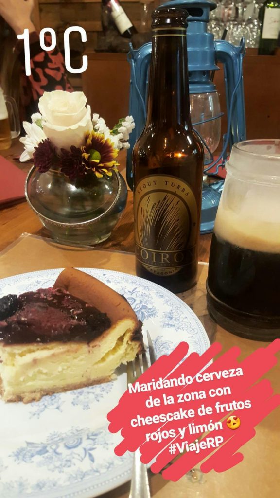 Como había cheescake de limón con frutos rojos, era la oportunidad de combinarlo con alguna cerveza stout, así que me ofrecieron una Coirón, oriunda de la zona y a cuyos creadores pronto podré conocer en este viaje.