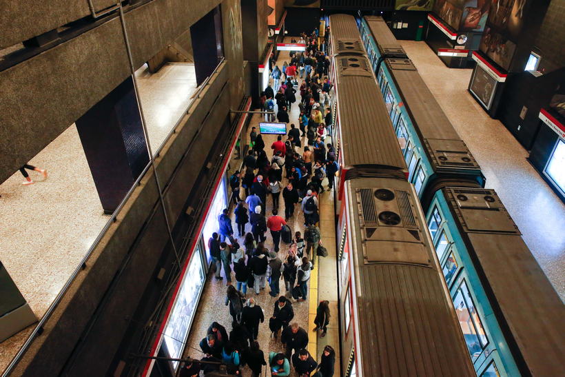 1 de Agosto del 2016/SANTIAGO Metro de Santiago paraliza el servicio en la línea 1 desde Santa Lucia hasta Tobalaba por desperfecto en la línea. Imagen del interior de la estación Universidad de Chile, donde están descendiendo a todos los pasajeros. FOTO:FRANCISCO LONGA/AGENCIAUNO