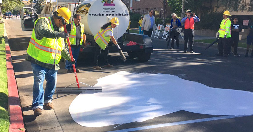 No obstante, se desarrollan pruebas pintando el pavimento de algunas calles en los 14 condados residenciales de Los Ángeles, con el fin de evaluar la medida. El gobierno de California está empeñada en buscar una solución a las altas temperaturas y sequías que afectan a la ciudad.