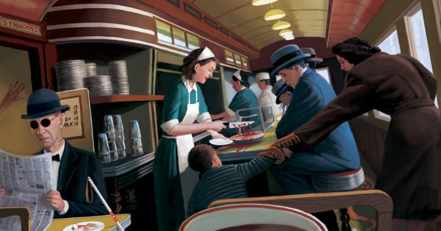 Pero Jeff se ha hecho conocido por una curiosa y terrorífica imagen que está dando vueltas en Internet. Se trata de una pintura que a simple vista se ve como una común ilustración de una cafetería vista desde el punto de vista de una de sus clientas.