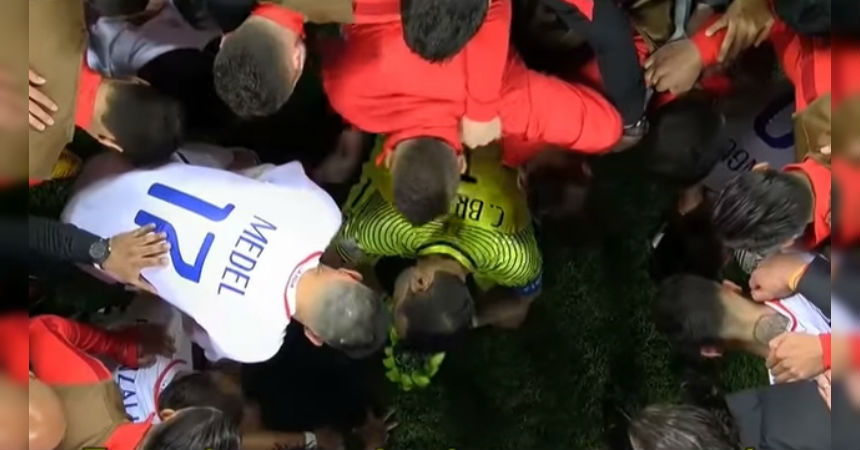 Antes del sufrido partido, en el que Claudio Bravo se coronó como la gran figura, y sabiendo que las cosas no serían nada fáciles, la Selección Nacional intentó relajarse al son de una popular canción.