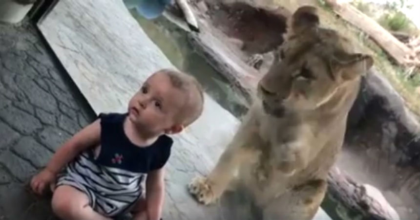 Ninguna madre dejaría solo a su bebé cerca de un animal tan peligroso como un león. Por eso es que este video ha llamado la atención en las redes sociales.