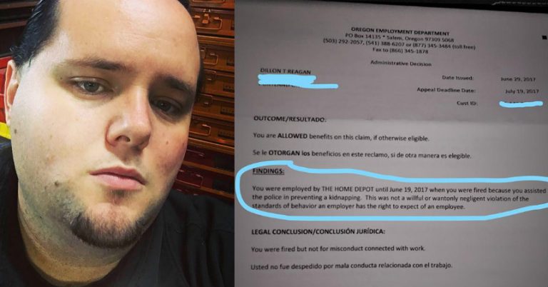 "Usted ha sido empleado de THE HOME DEPOT hasta el 19 de junio de 2017, cuando fue despedido por prestar asistencia a la policía a la hora de evitar un secuestro. Este acto no representa una violación voluntaria o deliberadamente negligente a las normas de comportamiento que una empresa tiene derecho a esperar de un empleado.