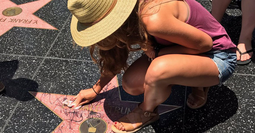 En las últimas semanas la estrella sólo lucía rayados con insultos hacia el gobernante. Lucía porque una fanática de Trump se dedicó a limpiarla, publicando el momento con una curiosa reseña: