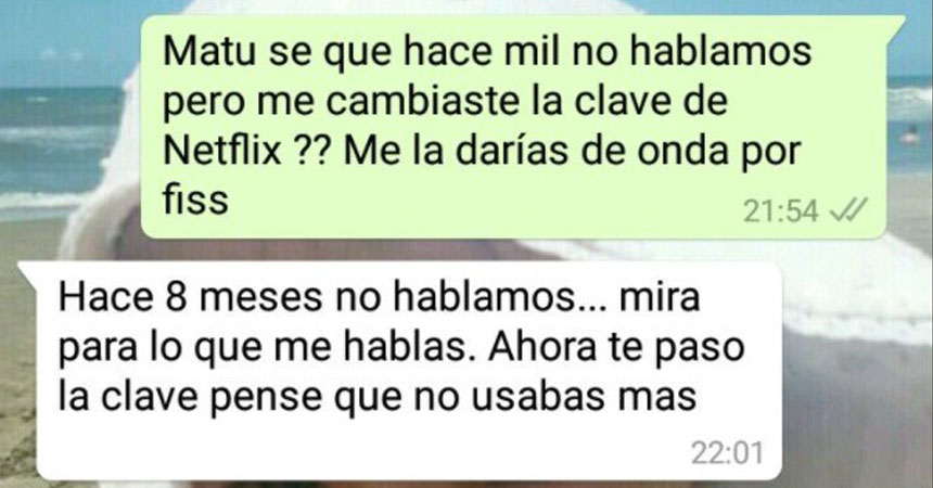Fue lo que le sucedió a un joven que luego de ocho meses de estar separado de su expareja, decidió escribirle para conseguir la contraseña de la cuenta de Netflix, para poder mirar un serie que le habían recomendado.