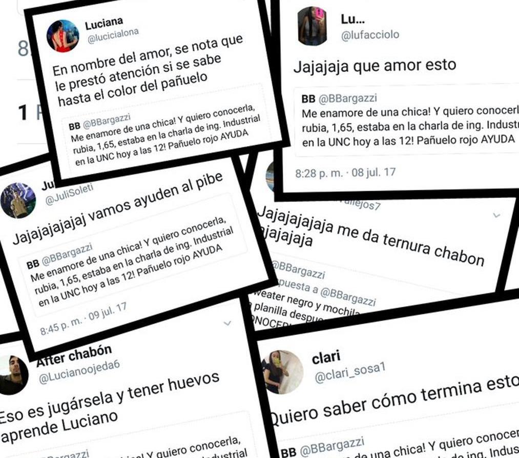 "Me enamoré de una chica!", comenzaba su primer tuit del 8 de julio, para luego añadir los detalles: "Quiero conocerla, rubia, 1,65, estaba en la charla de ingeniería industrial en la UNC hoy a las 12".