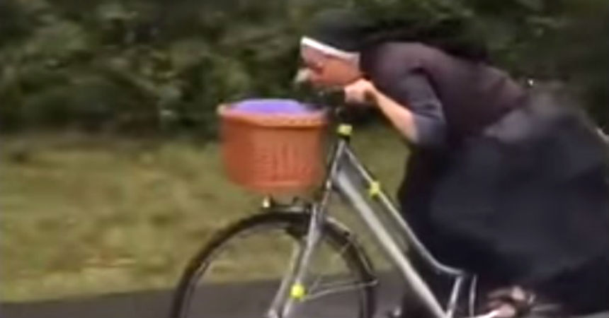 Un video de una monja montando bicicleta está dando la vuelta al mundo. Las imágenes corresponden a una carretera en España donde un conductor adelanta a una religiosa que avanza a toda velocidad.