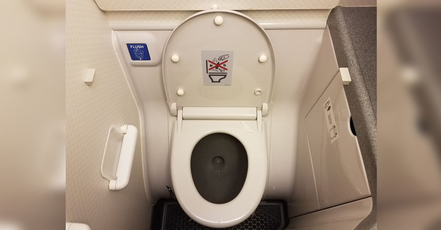 Cada vez que vamos al baño en nuestro hogar "tiramos la cadena". En un avión eso es diferente, presionamos un botón que activa un mecanismo que deja caer los químicos para limpiar y otro de succión que puede alcanzar más de 210 kilómetros por hora.