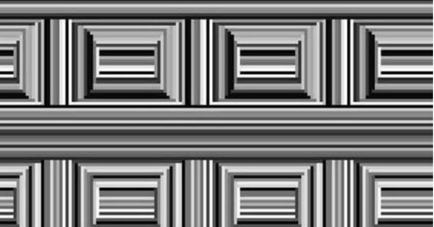 Si pones atención, puedes darte cuenta que entre medio de los cuadrados se forman círculos con las líneas rectas en blanco y negro.