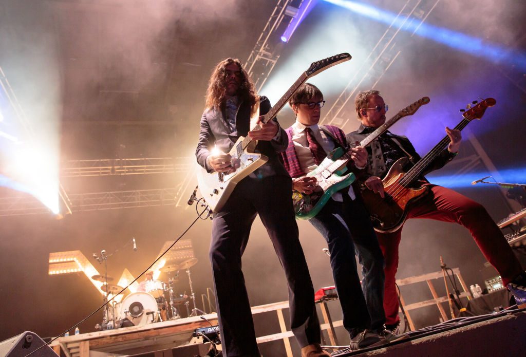 KANSAS CITY, MO - SEPTEMBER 09: Musicians Patrick Wilson, Brian Bell, Rivers Cuomo, and Scott Shriner of Weezer perform at Providence Medical Center Amphitheater on September 9, 2017 in Kansas City, Missouri. (Photo by Jason Squires/Getty Images)