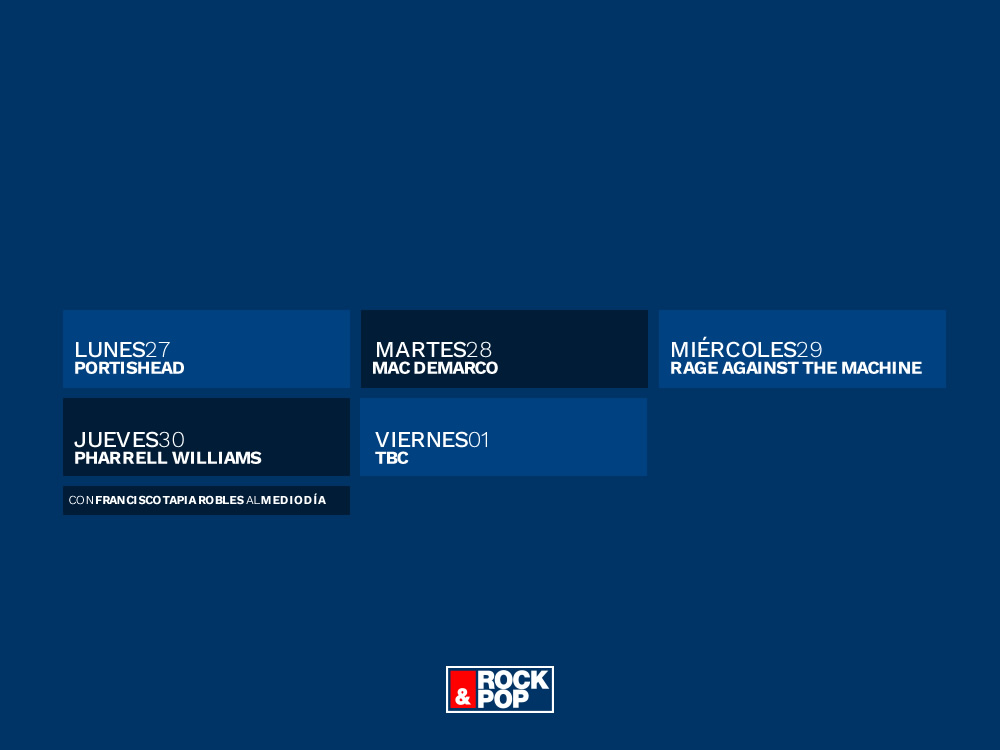 Especial #EspecialRP PHARRELL WILLIAMS HAPPY SHE WANTS TO MOVE HUNTER LOSE YOURSELF TO DANCE GET LUCKY BLURRED LINES Leer más... from #EspecialRP PHARRELL WILLIAMS Por Francisco Tapia Robles | 30 Nov, 2017. 12:30 hrs Comparte HAPPY SHE WANTS TO MOVE HUNTER LOSE YOURSELF TO DANCE GET LUCKY BLURRED LINES Mira el video de "Jacky's Only Happy When She's Up on the Stage", lo nuevo de Morrissey Dua Lipa entregó sus "nuevas reglas" para Navidad Sigue a Rockandpop.cl en Google Discover Recibe nuestros contenidos directamente en tu feed. Seguir en Google Contenido patrocinado