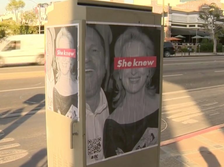 Una fotografía de Meryl Streep junto a Harvey Weinstein y la frase "ella sabía" en sus ojos: Aquel era el contenido de una serie de carteles que aparecieron recientemente en Los Angeles, California.