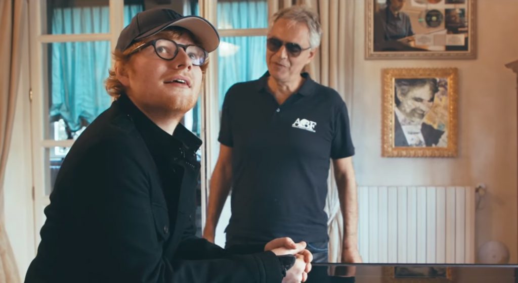 Esta canción, su último single del disco ÷, sumó al tenor italiano para su tercera grabación en menos de un año.