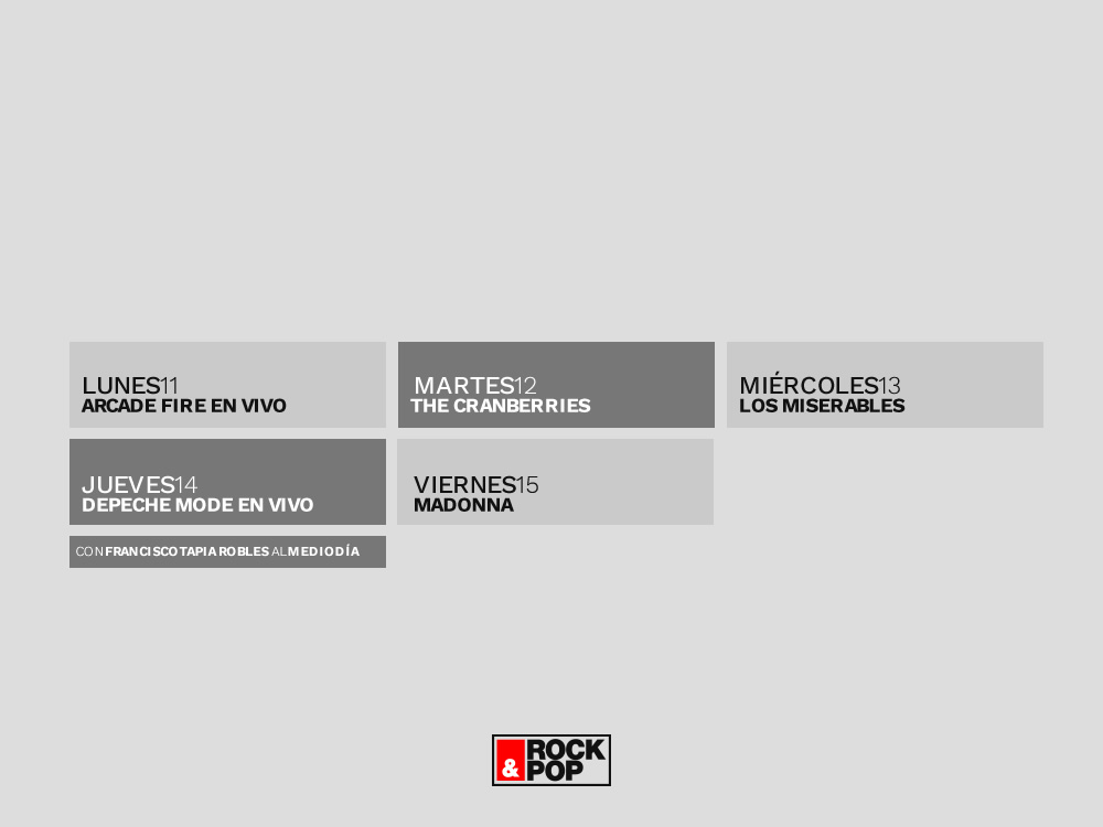 Especial #EspecialRP ARCADE FIRE EN VIVO THE SUBURBS READY TO START NO CARS GO SPRAWL II (MOUNTAINS BEYOND MOUNTAINS) WAKE UP Leer más... from #EspecialRP ARCADE FIRE EN VIVO Por Francisco Tapia Robles | 11 Dic, 2017. 12:30 hrs Comparte THE SUBURBS READY TO START NO CARS GO SPRAWL II (MOUNTAINS BEYOND MOUNTAINS) WAKE UP Niño compartió su testimonio de bullying y terminó siendo invitado a la avant premiere de Avengers: Infinity War Thom Yorke olvidó sus críticas y publicó todos sus discos solistas en streaming Sigue a Rockandpop.cl en Google Discover Recibe nuestros contenidos directamente en tu feed. Seguir en Google Contenido patrocinado