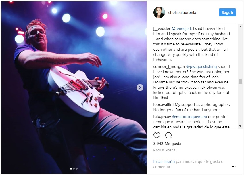 Jill Vedder, esposa del líder de Pearl Jam, tuvo duras palabras para referirse a Josh Homme luego de saber del golpe que le propinó a una fotógrafa durante su último show.