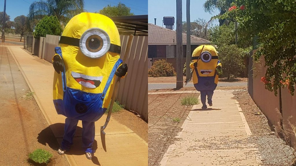 En las noticias bizarras del día: Un hombre en Australia, llamado Brad Nicklin, denunció que algo extraño estaba pasando en su barrio, y que resultó ser lo más peculiar que ha visto. Un Minion (o alguien disfrazado de Minion, al menos), le robaba el pasto del jardín.