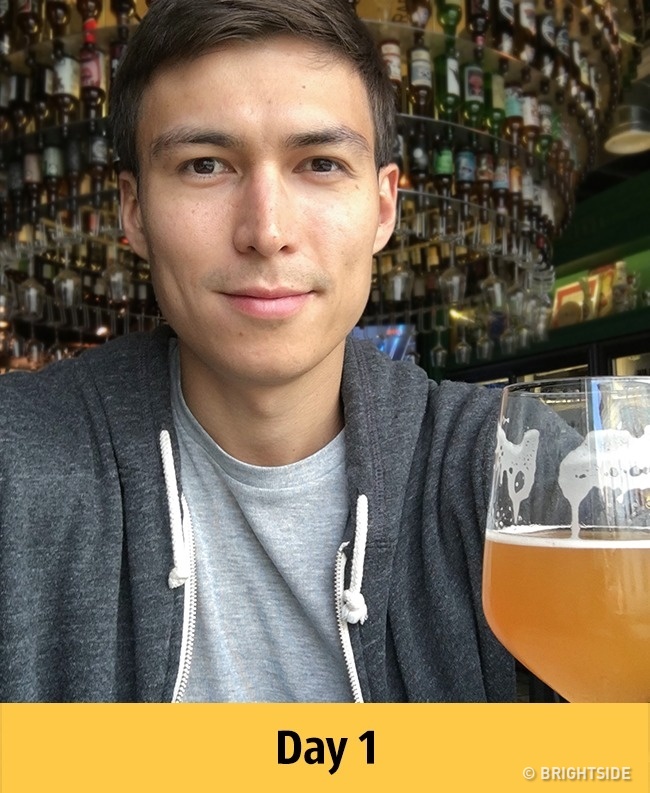 Un joven, editor del sitio Bright Side, realizó un experimento para dar a conocer los cambios físicos y mentales que sufre el cuerpo con la ingesta de alcohol.