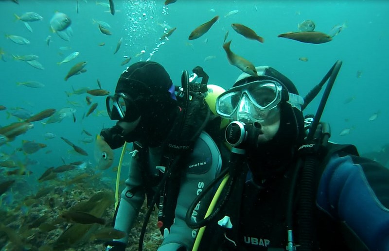 Además, Andrés nos contaba que si bien mucha gente hace buceo por primera vez fuera de Chile por la temperatura del agua, no hay que mirar en menos lo que tenemos acá. Uno de los mejores ejemplos que nos dio fue Isla de Pascua, donde la visibilidad bajo el mar puede ser de 30 a 35 metros o más.