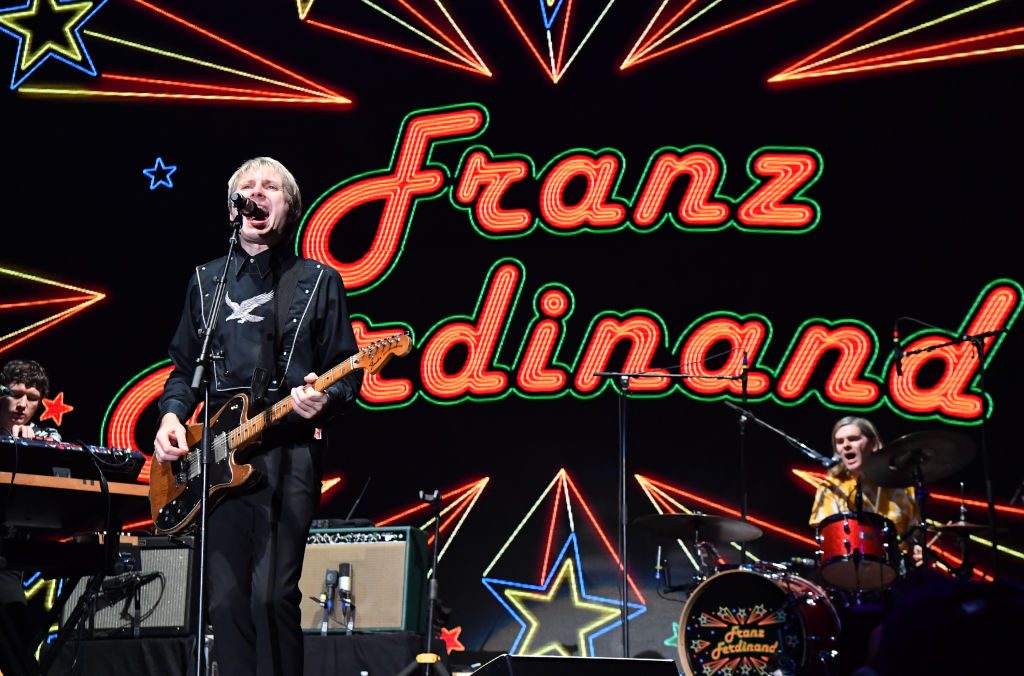 LOS ANGELES, CA - DECEMBER 10: Dino Bardot;Alex Kapranos;Paul Thomson;of Franz Ferdinand performs at the KROQ Almost Acoustic Christmas 2017 - Night 1 on December 10, 2017 at the Forum in Los Angeles, CA. (Photo by Jeff Kravitz/FilmMagic)