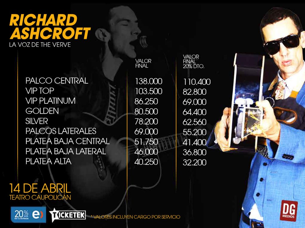 El ex vocalista de The Verve, vuelve a nuestro país el 14 Abril para presentar en el mismo recinto, su cuarto trabajo discográfico como solista "These People", lanzado en el 2016, y hacer un repaso de sus mejores clásicos, entre ellos: "They Don't Own Me", "Bitter sweet symphony", "Out Of My Body", "Black Lines" y más.