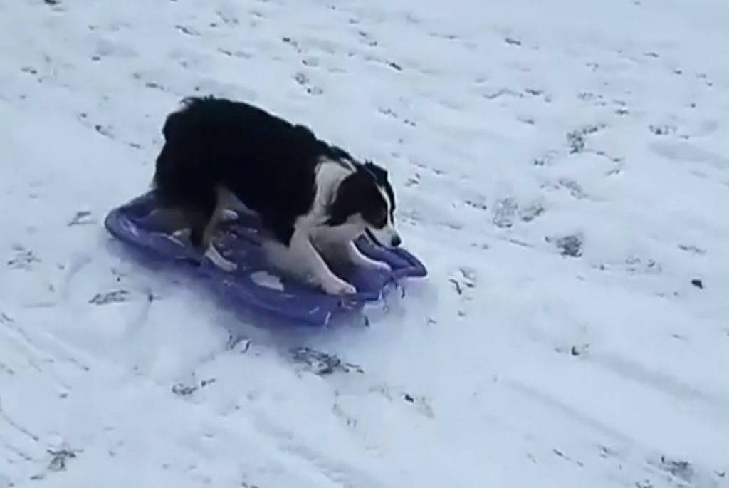 Resulta que la pastora ovejera fue grabada por su dueña mientras se lanzaba en trineo por la nieve desde lo alto de una colina, algo que parece disfrutar mucho.