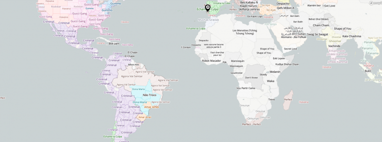 "The Cultural Borders of Songs", es un mapa interactivo creado por la empresa The Pudding, que muestra cuáles fueron las canciones más oídas el mes pasado en tres mil lugares en el mundo.