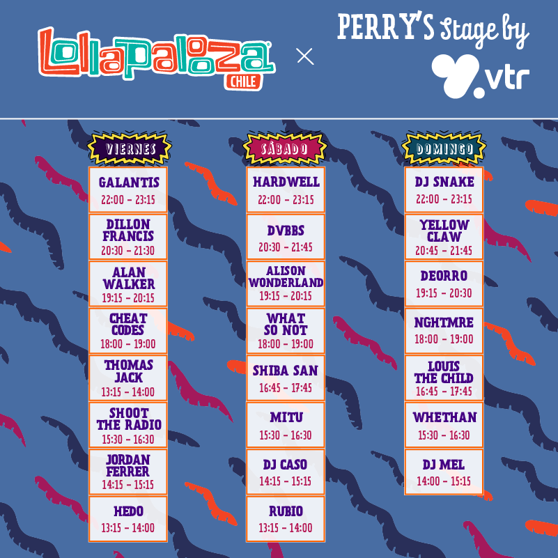 El Perry’s Stage by VTR volverá a ser un destino ineludible para esta versión, presentando durante el viernes nada menos que a ocho artistas. Con Galantis y Dillon Francis como grandes focos de atención.