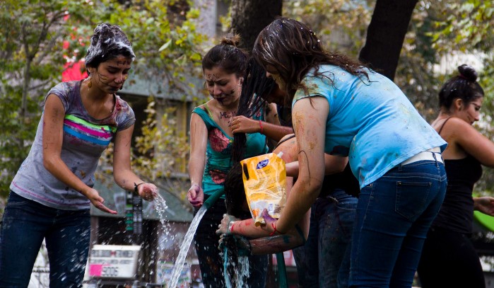 La clásica imagen de marzo no sólo incluye tacos y niños de uniforme tomándose las calles: En algunas ocasiones también suma olores extraños, harina y mucha pintura, porque aún hay chistositos en las universidades que creen que es divertido manchar a sus compañeros, romperles la ropa y mandarlos a pedir plata.