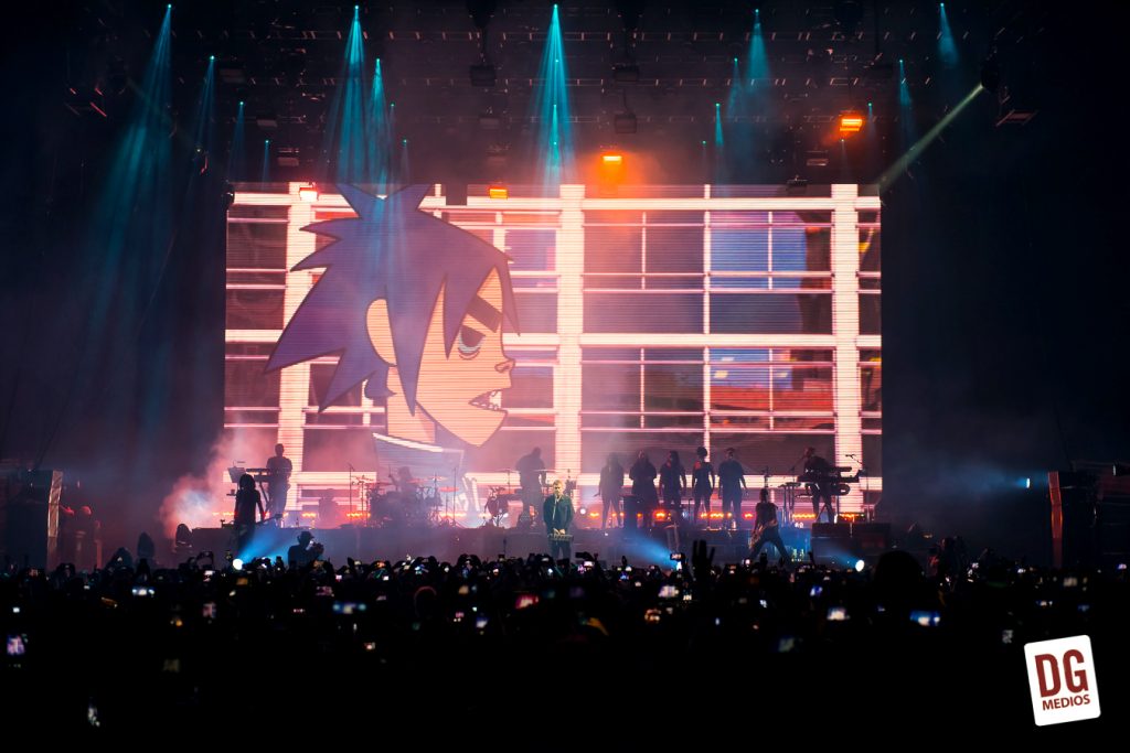 El pasado martes 20 de marzo fue la primera presentación de Gorillaz en el país, dentro de la primera gira mundial que la banda virtual ha realizado en su carrera. En un show con 24 canciones, Damon Albarn y compañía reventaron el Movistar Arena -lleno a tope, con 15 mil asistentes- con un sonido potente y la energía y felicidad que solo se pueden demostrar después de años de espera.
