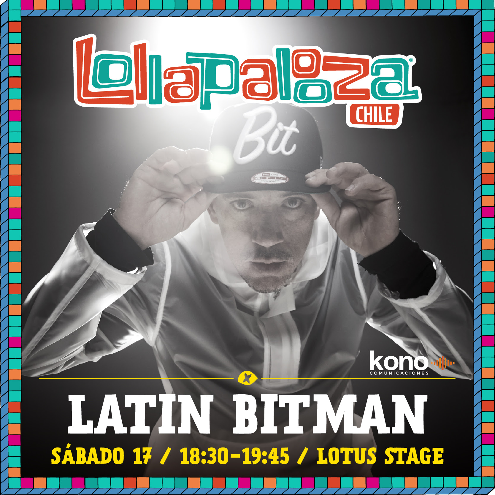 El próximo sábado 17 de marzo Latin Bitman se presentará en Lollapalooza Chile, siendo ésta su duodécima actuación en el festival musical si consideramos las versiones de nuestro país, de Argentina, de Brasil y de EE.UU.