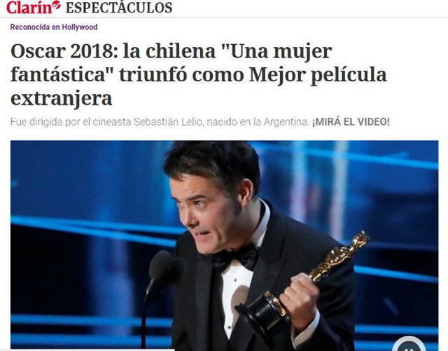 “Gracias a un director argentino, Chile ganó el primer Oscar para un largometraje de su historia”, tituló el sitio Minuto Uno, mientras que Clarín destacó entre sus líneas que "Una Mujer Fantástica", fue dirigida por el cineasta nacido en la Argentina.