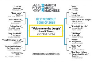 March Music Madness se llamó esta competencia que invitó a nominar su canción de entrenamiento favorita. Luego emparejaron esas canciones y abrieron las votaciones para decidir qué piezas avanzaban, ronda por ronda.