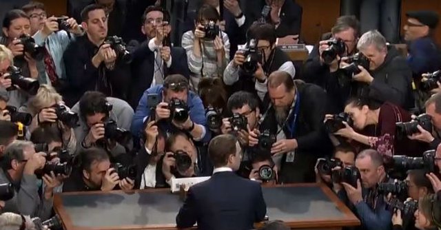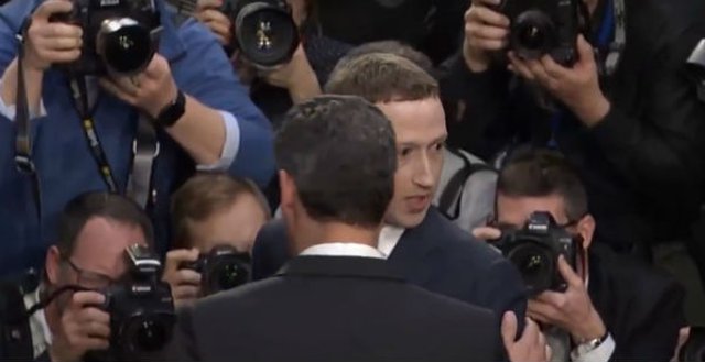 Instantes previos a que comenzara la sesión del Congreso, una docena de reporteros gráficos se abalanzó sobre el fundador de Facebook, generando una escena discordante. El creador de la red social que entregó los datos personales de millones de usuarios, ahora se ve avasallado por una decena de flashes que invaden su visión y que lo observan sin carisma alguna.