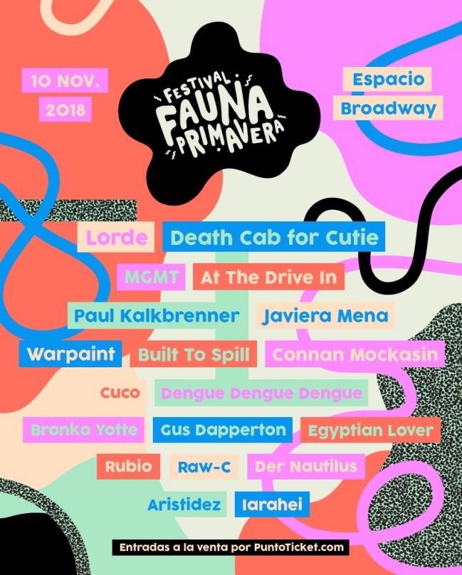 Además de estos confirmados, hoy La Tercera, destaca que Lorde es otra de las artistas que llegará el próximo 10 de noviembre a Fauna Primavera. Según el diario nacional la neozelandesa, llega tras ser confirmada como parte del cartel del festival brasileño Popload.