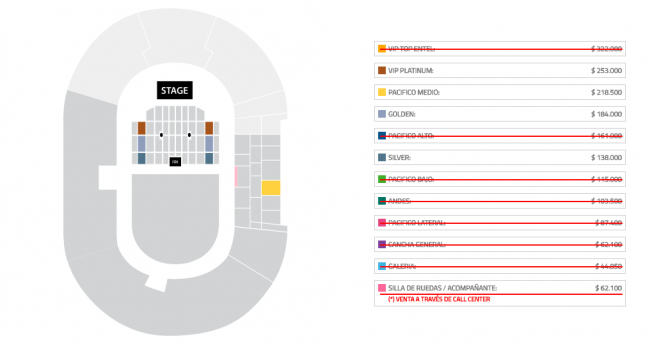 A seis meses del concierto del ex líder de Pink Floyd, sólo van quedando entradas que van desde los $138.000 hasta $253.000 para las ubicaciones Silver, Golden, Pacífico Medio y VIP Platinum.