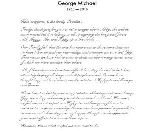 George Michael falleció hace casi dos años, pero sin duda que su legado musical es inmortal. También lo es el cariño que dejó en sus fanáticos, que no han parado de llevar flores, fotos y regalos a sus dos casas en Londres y Oxfordshire.