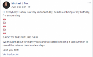 A través de una cuenta que suponía ser de Michael J. Fox, el supuesto actor confirmaba la realización de una nueva película.