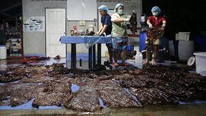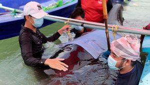 Antes de morir, la ballena sufrió convulsiones y al vomitar, expulsó cinco bolsas plásticas. Sin embargo, al realizar la autopsia descubrieron que la razón de su muerte fue la intoxicación por tragar 80 bolsas.
