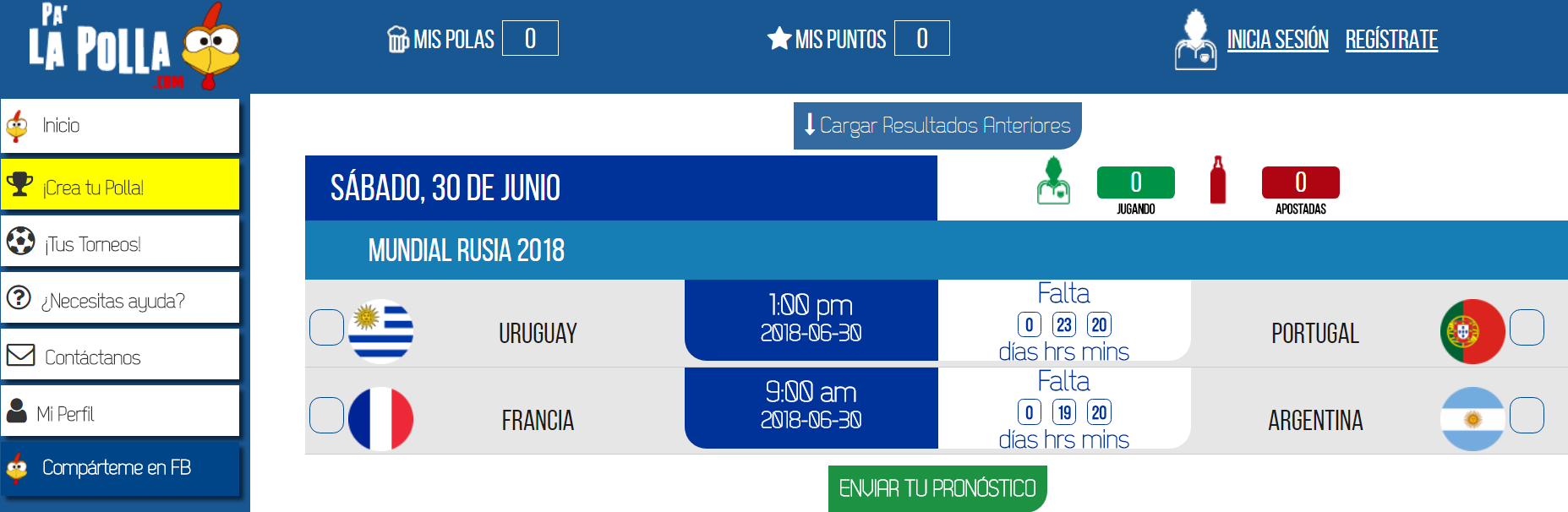 Es una pagina web y aplicación para Android que te permite hacer las apuestas con los marcadores del Mundial. Para empezar a usar el servicio hay que registrarse con tu usuario, una vez hecho esto podrás concursar en el ranking general de la web o crear una polla privada y compartirla solamente con tu gente.