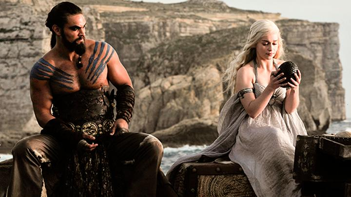 ¿Lo divertido? Tanto Clarke como Kit Harington aparecieron en los brazos de Momoa, frente al Trono de Hierro.