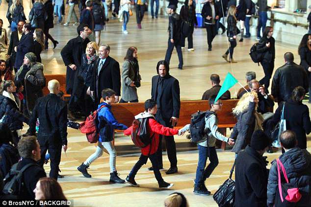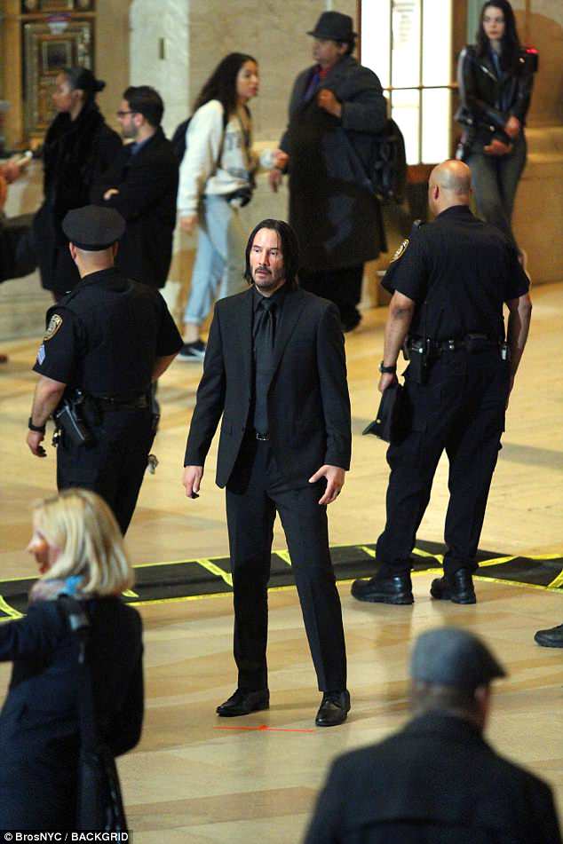 Aquí lo que se puede ver es al actor con su clásica y elegante vestimenta de asesino, cobrando la vida de Mark Dacascos, en Grand Central Terminal de Nueva York.