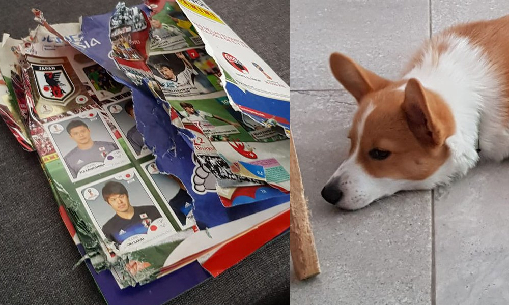 Yoda, su pequeño cachorro, se comió gran parte del álbum del Mundial de Rusia mientras ellas estaba trabajando.