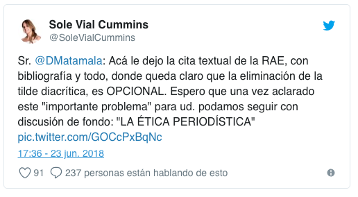 Finalmente, Soledad Vial terminó reconociendo el error ante la insistencia de los usuarios, quienes le pidieron una respuesta ante el emplazamiento de la RAE.