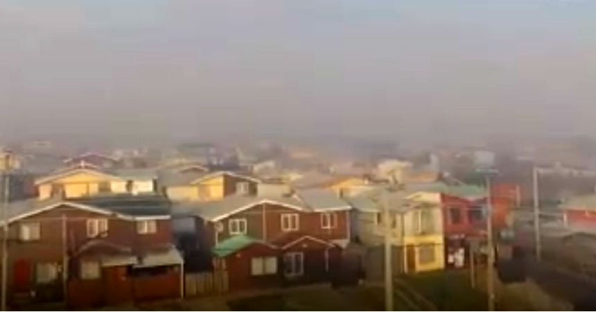 En las imágenes se ve cómo una densa nube cubre las casas y no deja ver más allá de unos cuantos metros. “El video fue grabado a las 10:15 en la intersección de Campos de Hielo con Bilbao, donde termina Coyhaique. Un sector alto de la ciudad”, dijo a La Cuarta.