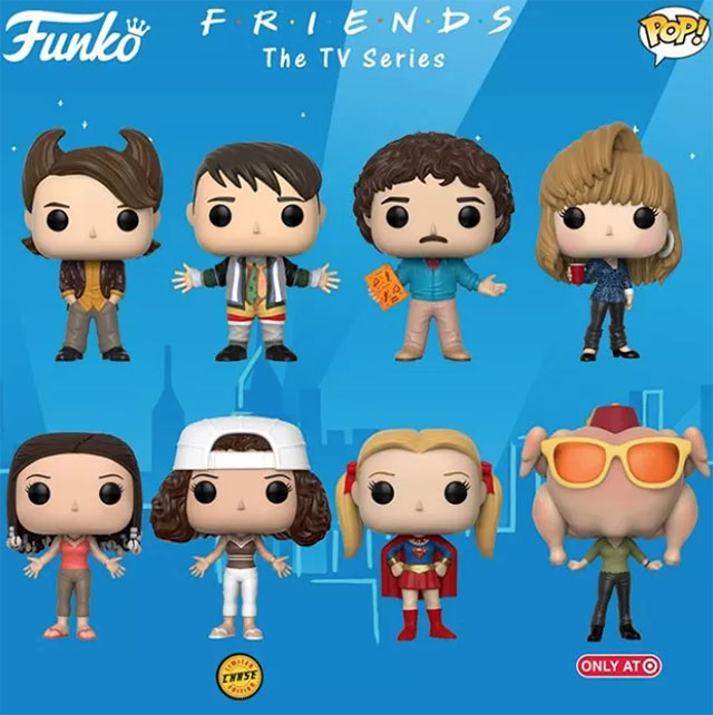 El nuevo tiraje va estar compuesto por 8 muñecos diferentes que rendirán honor a 5 momentos de la serie: los flashbacks de la década de los ’80 de Rachel, Ross y Chandler; el viaje de Mónica a Barbados en que se hizo esas trenzas ; cuando Phoebe se disfrazó de SuperGirl; la vez que Joey se vistió con todas las prendas de Chandler, y la hilarante escena en la que Mónica se puso un pavo en la cabeza.