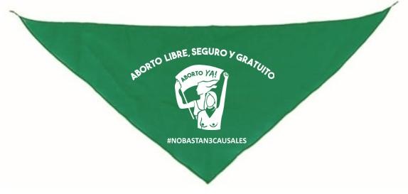 El pañuelo está siendo vendido ($1.000) por agrupaciones como Coordinadora Feministas en la Lucha y en su estampado cuenta con el mensaje "aborto libre, seguro y gratuito", además de la ilustración de dos mujeres y el hashtag #NoBastan3Causales.
