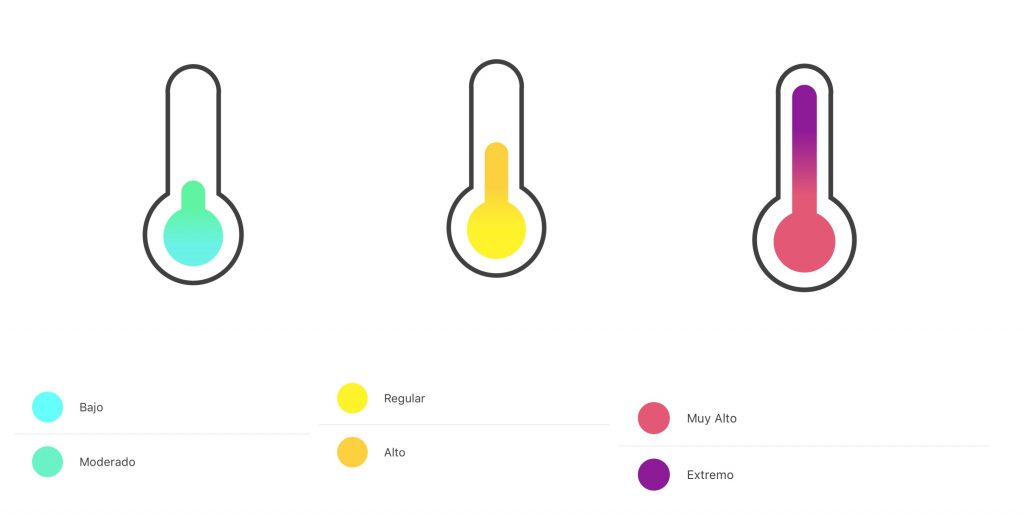Al descargar por primera vez Airbom, te muestra un gráfico con termómetros de diferentes colores y el significado de cada uno.