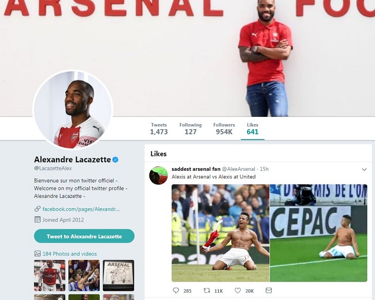 Poco rato después fue el mismo delantero del Arsenal Alexandre Lacazette quien le puso me gusta y desató una ola de comentarios.
